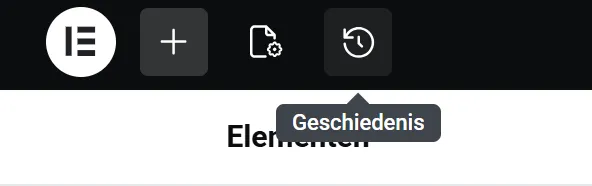 De geschiedenisknop vind je links onderin de editor naast de ‘responsive’ knoppen. In de nieuwere versies van Elementor tref je deze linksbovenin.