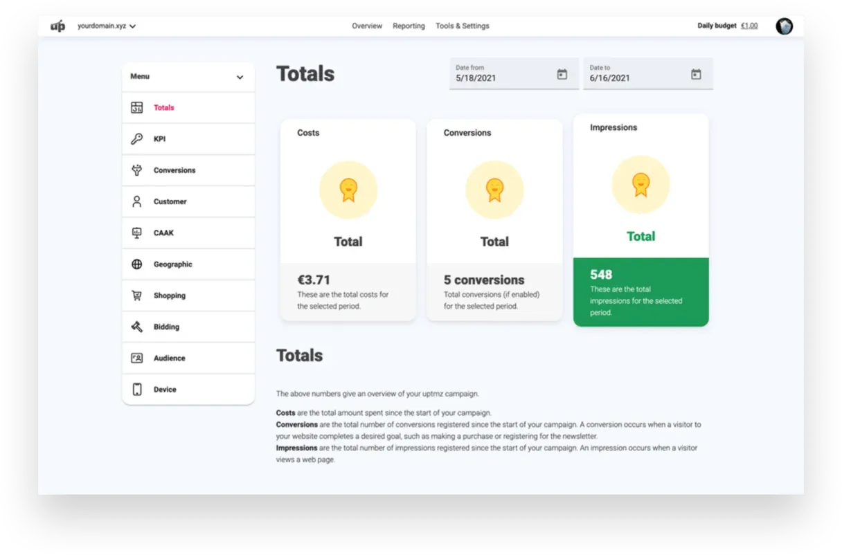 Uptmz biedt alleen de data die je nodig hebt, zonder ingewikkelde overzichten, keuzes en vragen. Wij controleren of Uptmz jouw campagnes heeft verbeterd zonder dat je teveel betaalt voor consultancy-uren. Er zijn geen ingewikkelde opties of instellingen nodig.