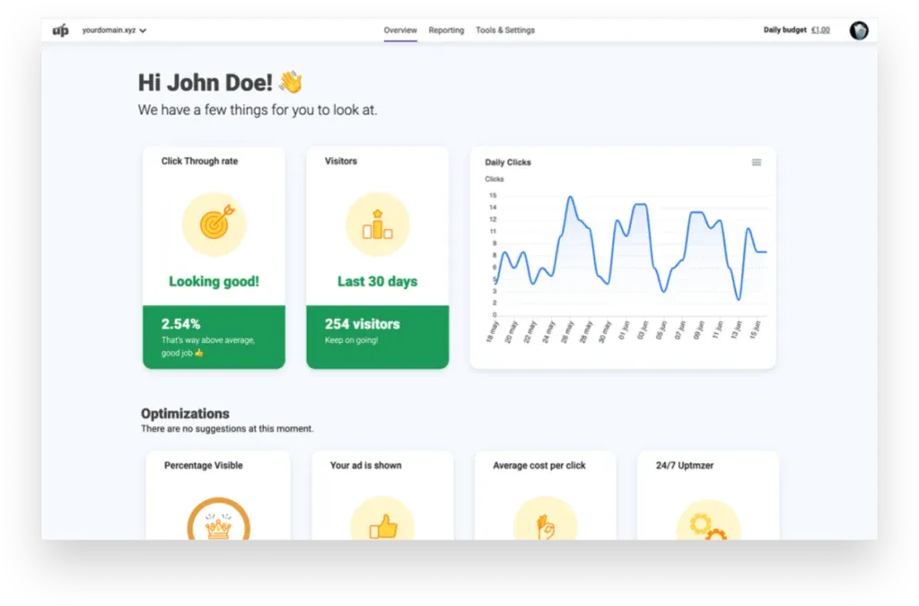 We zijn vrij om te adverteren in Uptmz zonder enkele verplichtingen. Je kunt het dagbudget aanpassen op elk moment en het zelf instellen op een niveau dat voor jou werkt. Als je het budget op nul laat zetten, betaal je niets en worden alle advertenties gepauzeerd.