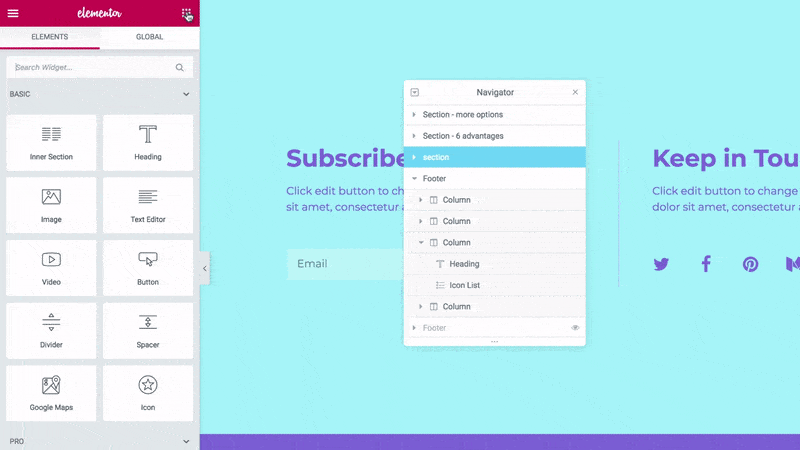 Elementor heeft dé oplossing, namelijk: Navigator!