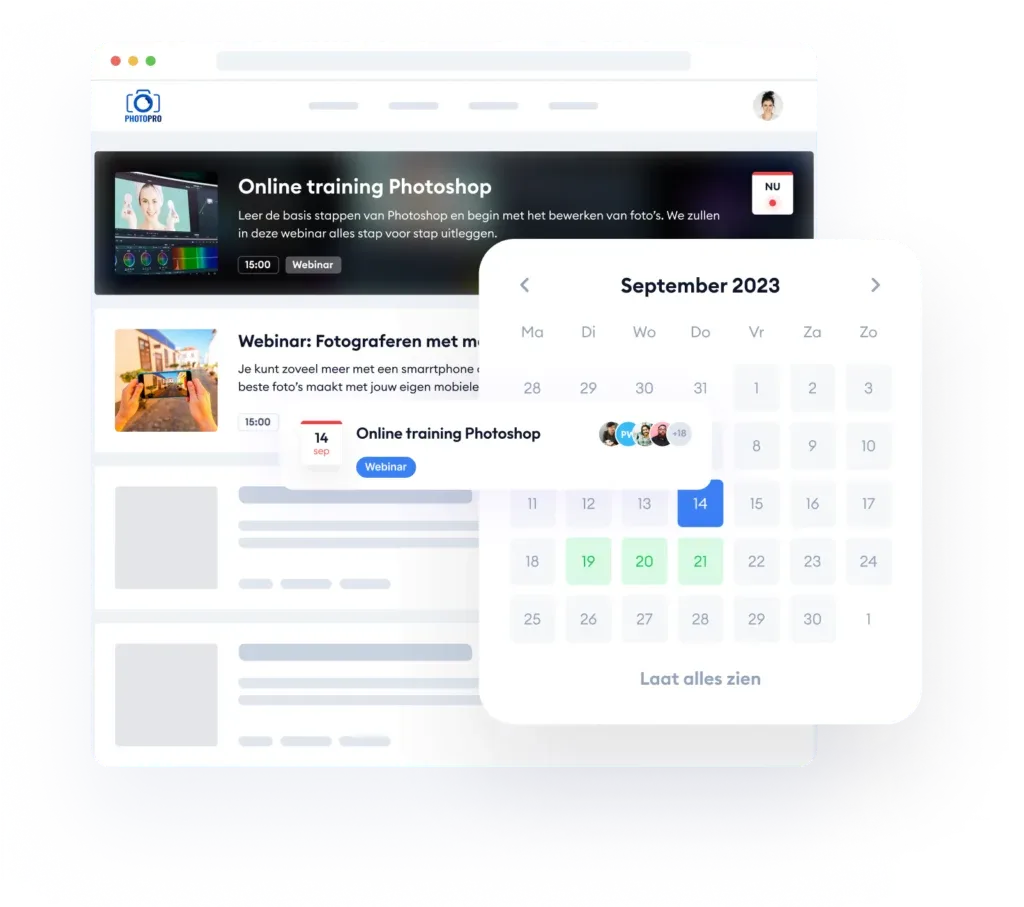 Docenten kunnen met Huddle moeiteloos live evenementen organiseren, zoals trainingen, workshops en interactieve Q&A-sessies. Een overzichtelijke evenementenagenda en integratie met Zoom maken de planning en uitvoering soepel.