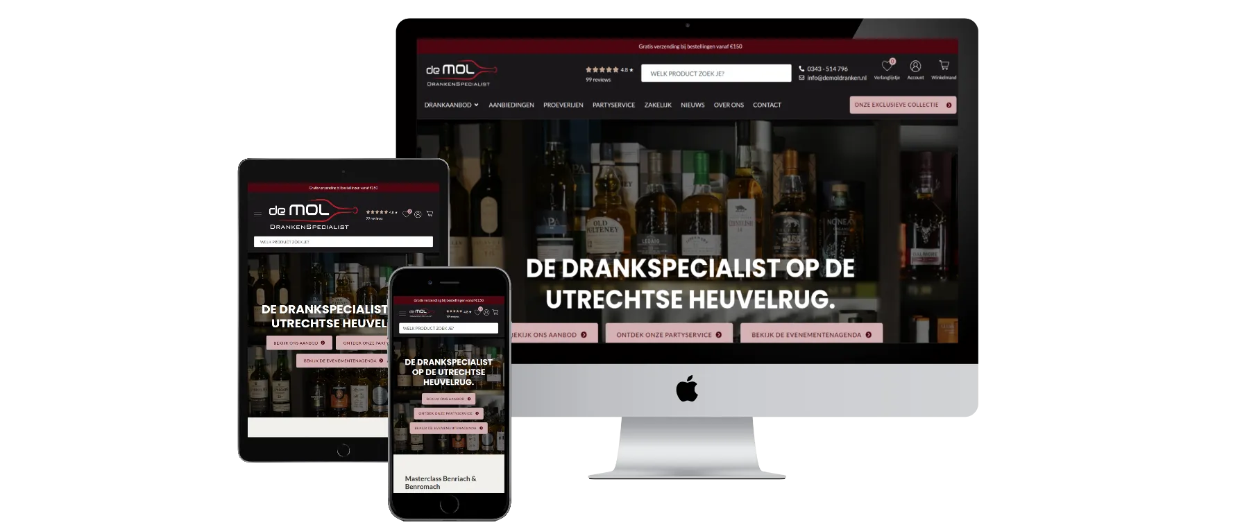 Begin december 2024 klopte De Mol DrankenSpecialist bij WebsiteToday aan met een duidelijke wens: een online etalage die net zo verfijnd en uitnodigend zou zijn als hun winkelpanden in Driebergen en Bilthoven. Al snel doken we samen in hun wereld van zorgvuldig geselecteerde wijnen, gedistilleerde spirits en feestelijke partyservices. Tijdens onze eerste workshops ontdekten we niet alleen hun merkidentiteit, maar ook hoe belangrijk snelheid, gebruiksgemak en uitstraling zijn voor hun klanten.