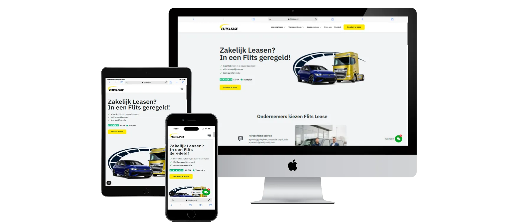 Voor Flitslease.nl, een leasemaatschappij met een scherp aanbod van direct beschikbare leaseauto’s, heeft Websitetoday de complete website ontwikkeld en opgeleverd. Het doel: een snelle, overzichtelijke en gebruiksvriendelijke online omgeving waar bezoekers eenvoudig het actuele leaseaanbod kunnen bekijken en direct contact kunnen opnemen.
