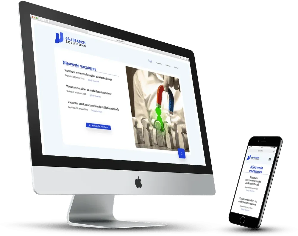 De website voor J&J Search Solutions bestaat uit een grote vacature module. Zij hebben de mogelijkheid laten inbouwen om vacatures te plaatsen, te filteren, te zoeken en kandidaten direct via hun website te laten reageren. Reageren kan d.m.v. een gepersonaliseerde popup. Tevens beschikt de website over een zeer uitgebreide filter module, zodat het vinden van de juiste vacature nóg eenvoudiger wordt.