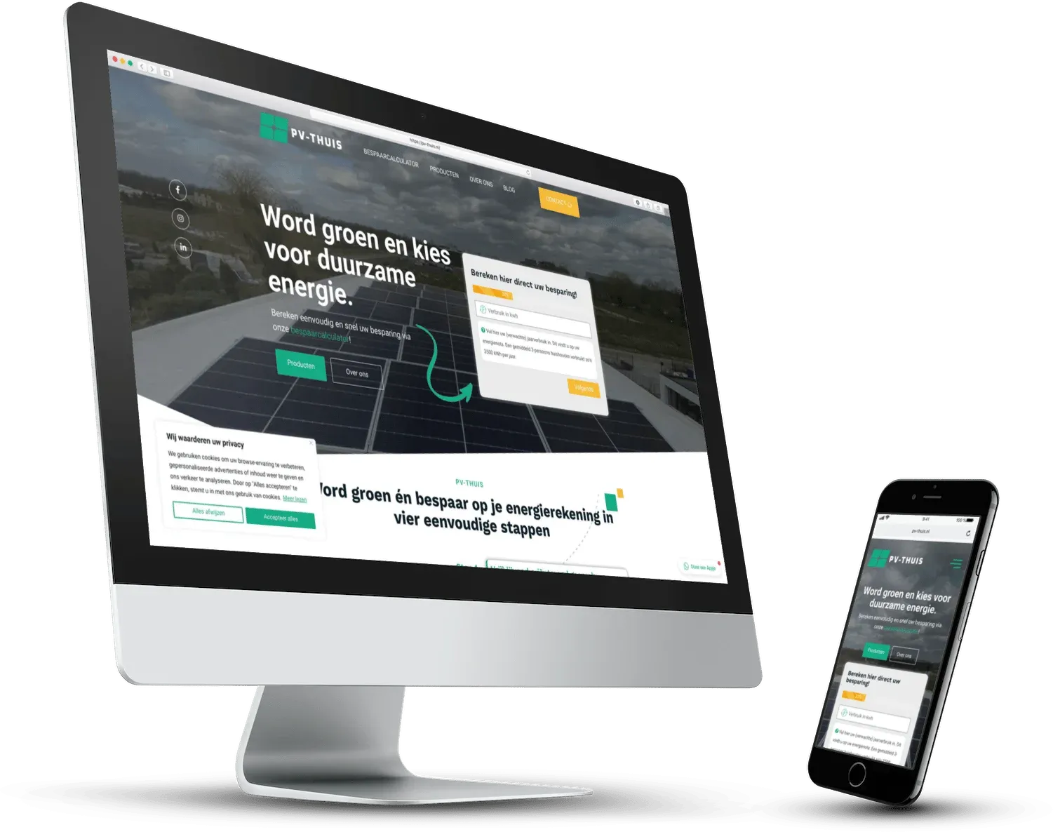Deze website is gebouwd met een hele bijzondere calculator. Vul je jaarlijks verbruik in en de website komt met een passend advies over het aantal zonnepanelen en een indicatie van de mogelijke besparing. Daarnaast is de website conversie ingericht dat de persoon direct een vrijblijvende offerte kan opvragen. Nieuwsgierig? Bekijk de site zelf en probeer het uit!