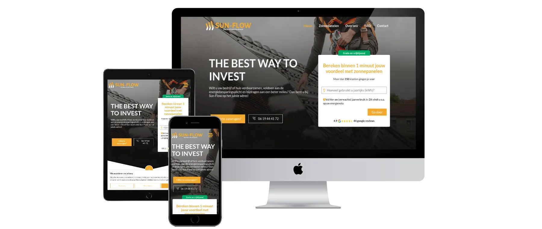 Sun-Flow een bestaand bedrijf dat zonnepanelen verkoopt vroeg ons zijn website te vernieuwen. Egbert had bij een andere partij al een prachtig logo laten ontwerpen. Het logo is voor ons een blauwdruk geweest voor het nieuwe strakke design van Sun-Flow.nl.