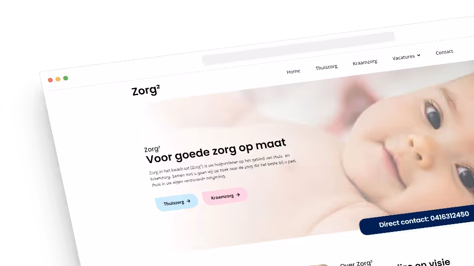 Wij hebben de kans gekregen om Zorg2.nl te vernieuwen. Met een nieuw, rustig en modern design hebben we de website in een mooi nieuw jasje gestoken. De website beschikt over een fysieke en visuele splitsing op het gebied van thuis- en kraamzorg. Daarnaast is het mogelijk om via een inschrijfformulier je direct aan te melden voor de diensten van Zorg2.